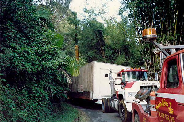 All steel, two sectional, highway transportable Electronic Shelter. Clegg Industries built this shelter, transported it to California, and installed it. Recently Clegg Industries relocated this shelter to a mountain top in Puerto Rico.