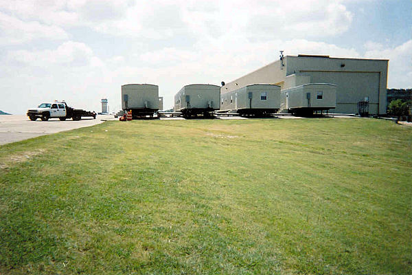 These military bunk houses were custom built to be used as offices and living quarters for pilots that must be on standby status near their aircraft.
