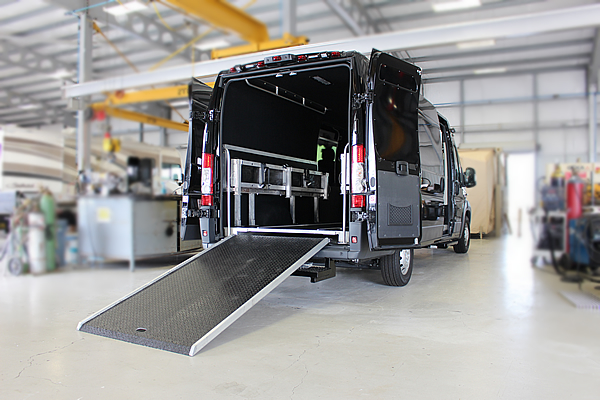 It features an aluminum rear access ramp and custom aluminum bench seating with seat belts. This van will provide prisoner transportation, medical transport, SWAT and can also function as a mini command station.